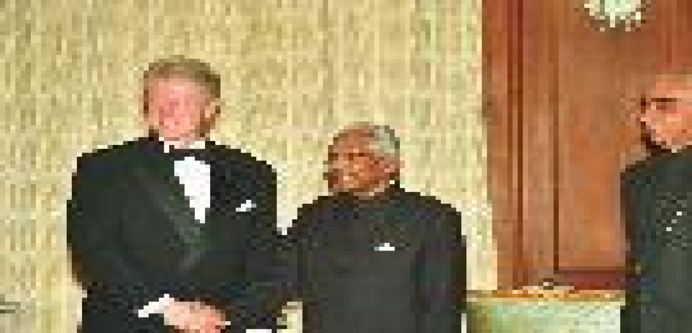 The President of India, Shri K R Narayanan at the Ceremonial Reception of the President of the United States of America, HE Mr William J Clinton at the Forecourt of Rashtrapati Bhavan in New Delhi on March 21, 2000