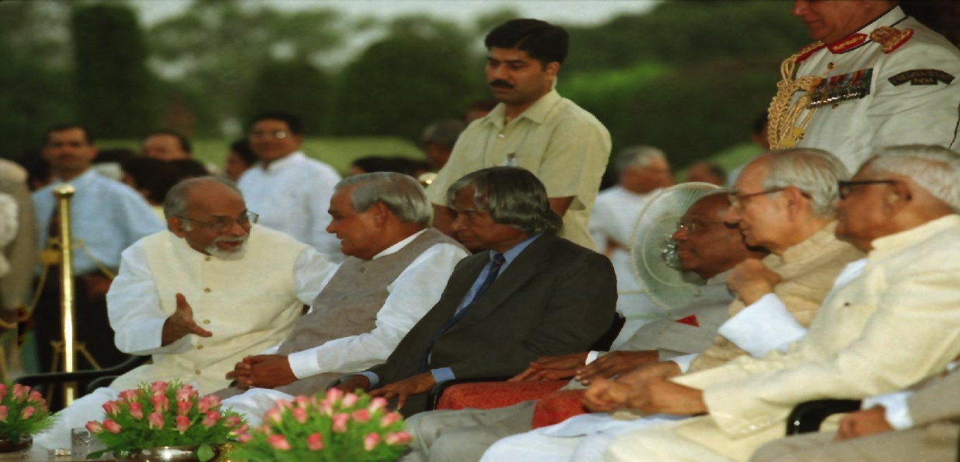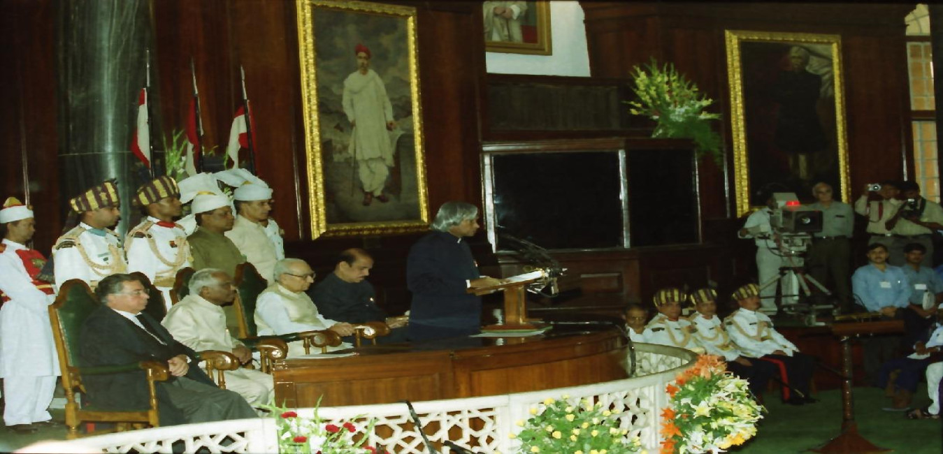 The President of India, Shri K R Narayanan at the Swearing-in-Ceremony of the Elected-President, Dr A P J Abdul Kalam at the Parliament House in New Delhi on July 25, 2003
