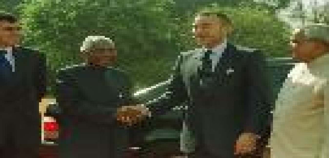 The President of India, Shri K R Narayanan at the Ceremonial Reception of the President of the Republic of Lithuania and HE Mr Valdas Adamkus and his wife Alma Adamkiene at the Forecourt of Rashtrapati Bhavan in New Delhi on Feb 20, 2001