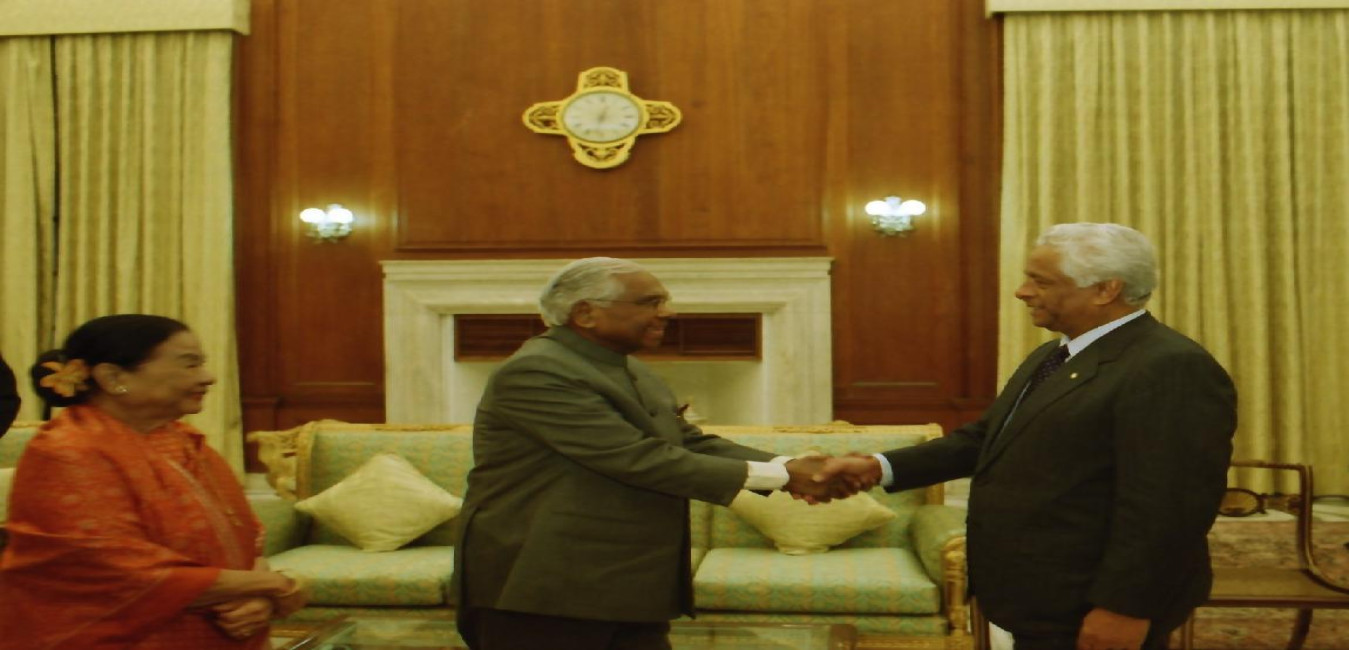 The President of India, Shri K R Narayanan at the Lunch Hosted in Honour of the Distinguished Guests Prime Minister of the Republic of Mauritius, Rt Hon'ble Sir Anerood Jugnauth and his wife Lady Sarojini Devi Jugnauth at the Banquet Hall of Rashtrapati Bhavan in New Delhi on Jan 16, 2001