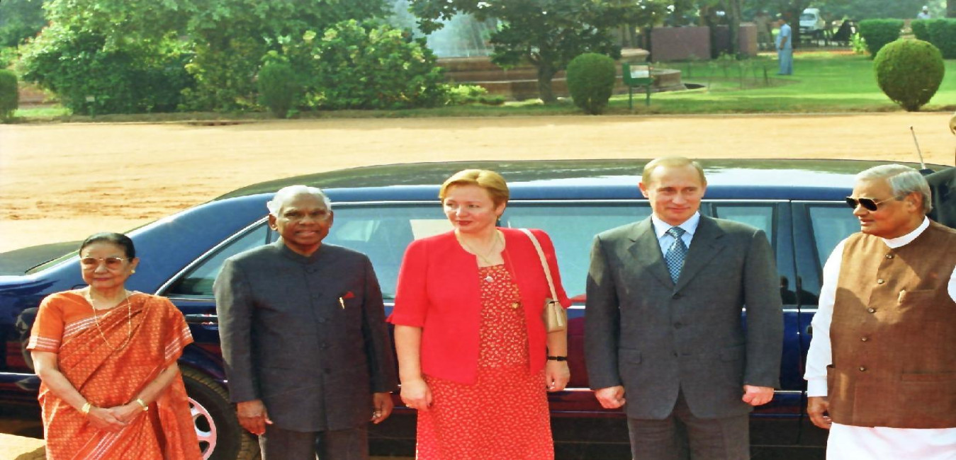 The President of the Russian Federation, HE Mr Vladimir V Putin and his wife Mrs Lyudmila Putin calling on the President of India, Shri K R Narayanan at the North Drawing Room of Rashtrapati Bhavan in New Delhi on Oct 03, 2000