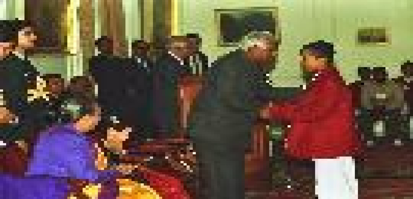The President of India, Shri K R Narayanan meeting with the National Bravery Awards winning Children with their Escorts and Officials of the Indian Council for Child Welfare at the Yellow Drawing Room of Rashtrapati Bhavan in New Delhi on Jan 20, 1998