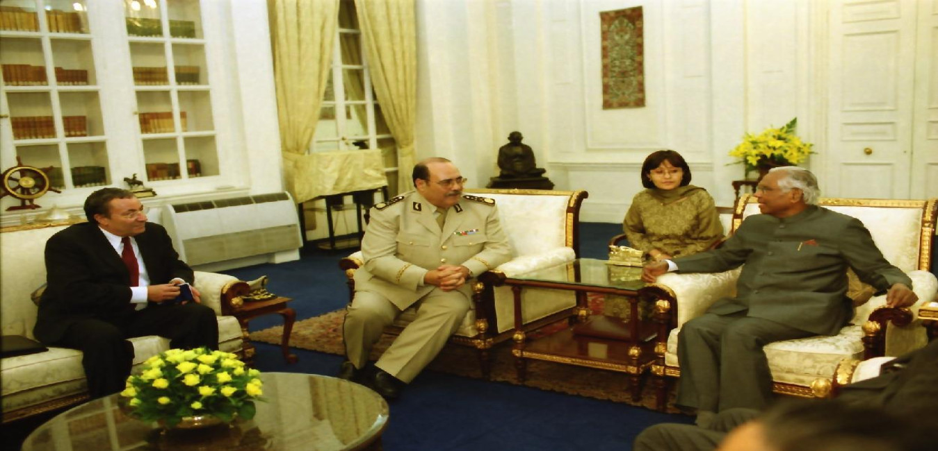 The Chief of Popular National Army of Algeria, General Mohammed Lamari calling on the President of India, Shri K R Narayanan at the Morning Room of Rashtrapati Bhavan in New Delhi on Nov 08, 2001