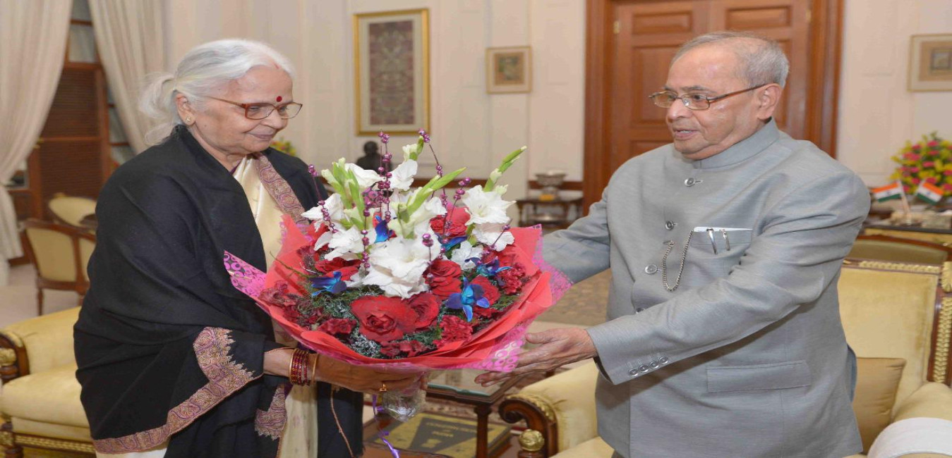 The President of India, Shri Pranab Mukherjee meeting with Smt. Mridula Sinha, Governor of Goa, at Rashtrapati Bhavan on April 13, 2017.