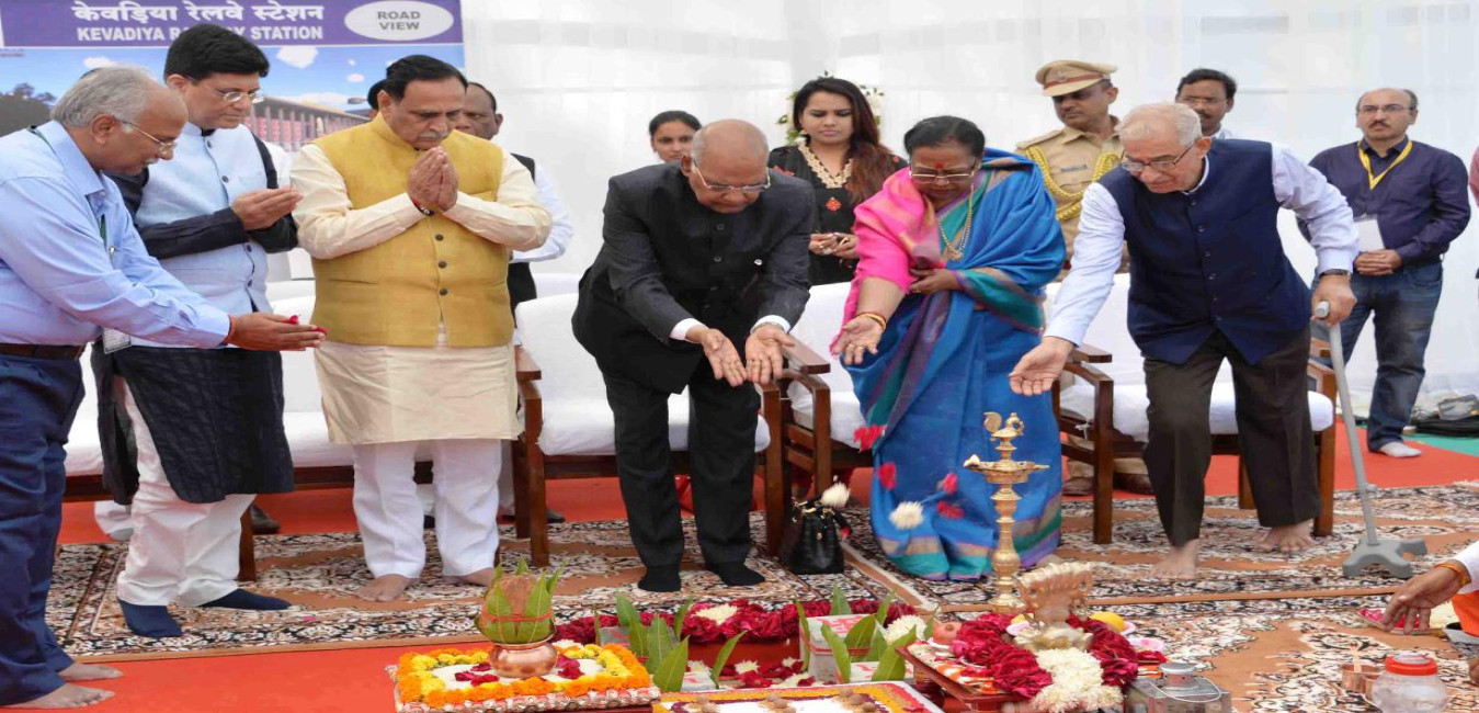 The President of India, Shri Ram Nath Kovind laying the foundation stone for Kevadia Railway Station, in Narmada district of Gujarat on December 15, 2018.