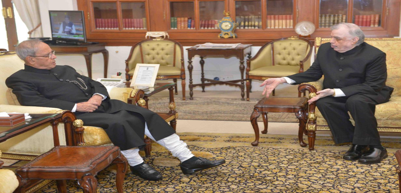 The President of India, Shri Pranab Mukherjee meeting with the Governor of Kerala, Shri Justice (Retd) P. Sathasivam, at Rashtrapati Bhavan, in New Delhi on July 24, 2015.