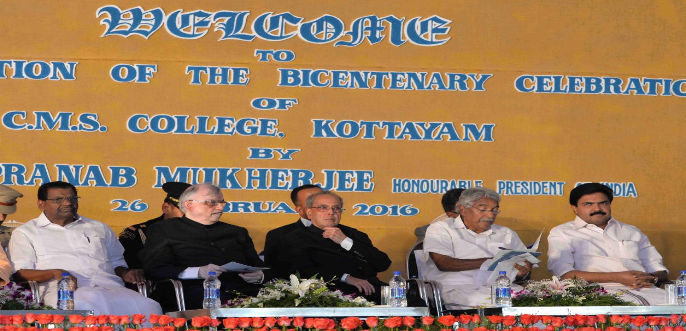 The President of India, Shri Pranab Mukherjee unveiling the plaque to inaugurate the Bicentenary Celebrations of CMS College and Foundation Stone laying of its Bicentenary Block, at Kottayam, in Kerala on February 26, 2016.