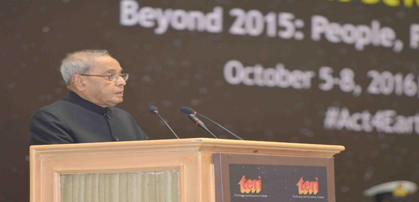 The President of India, Shri Pranab Mukherjee inaugurating the first edition of World Sustainable Summit on the theme "Beyond 2015 : People, Planet and Progress" organized by The Energy and Resources Institute (TERI), at Vigyan Bhavan, in New Delhi on October 06, 2016.