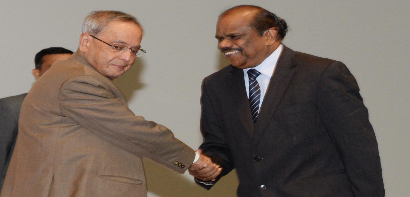 The President of India, Shri Pranab Mukherjee presenting the Lal Bahadur Shastri National Award for Excellence in Public Administration, Academics and Management - 2014 to Dr A Sivathanu Pillai, Chief Controller (R & D), DRDO and Chief Executive and Managing Director, BrahMos Aerospace at Rashtrapati Bhavan in New Delhi on Oct 07, 2014