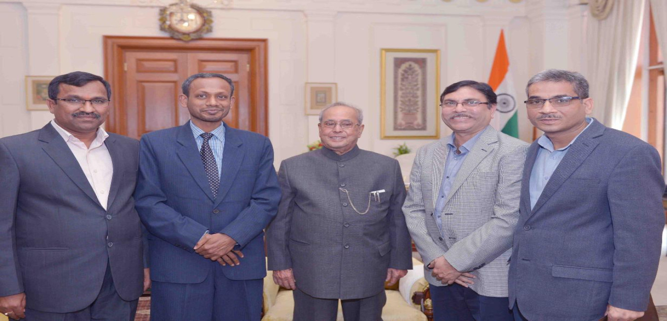 The President of India, Shri Pranab Mukherjee meeting with Shri A.K. Sinha, GM, BSNL, Kolkata with members of the Indian Telecom Service Association, at Rashtrapati Bhavan on November 26, 2016.