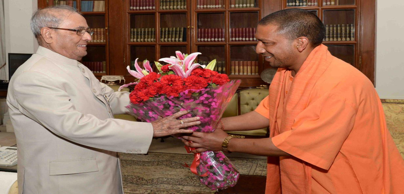 The Chief Minister of Uttar Pradesh, Yogi Adityanath calling on the President of India, Shri Pranab Mukherjee, at Rashtrapati Bhavan on March 21, 2017.