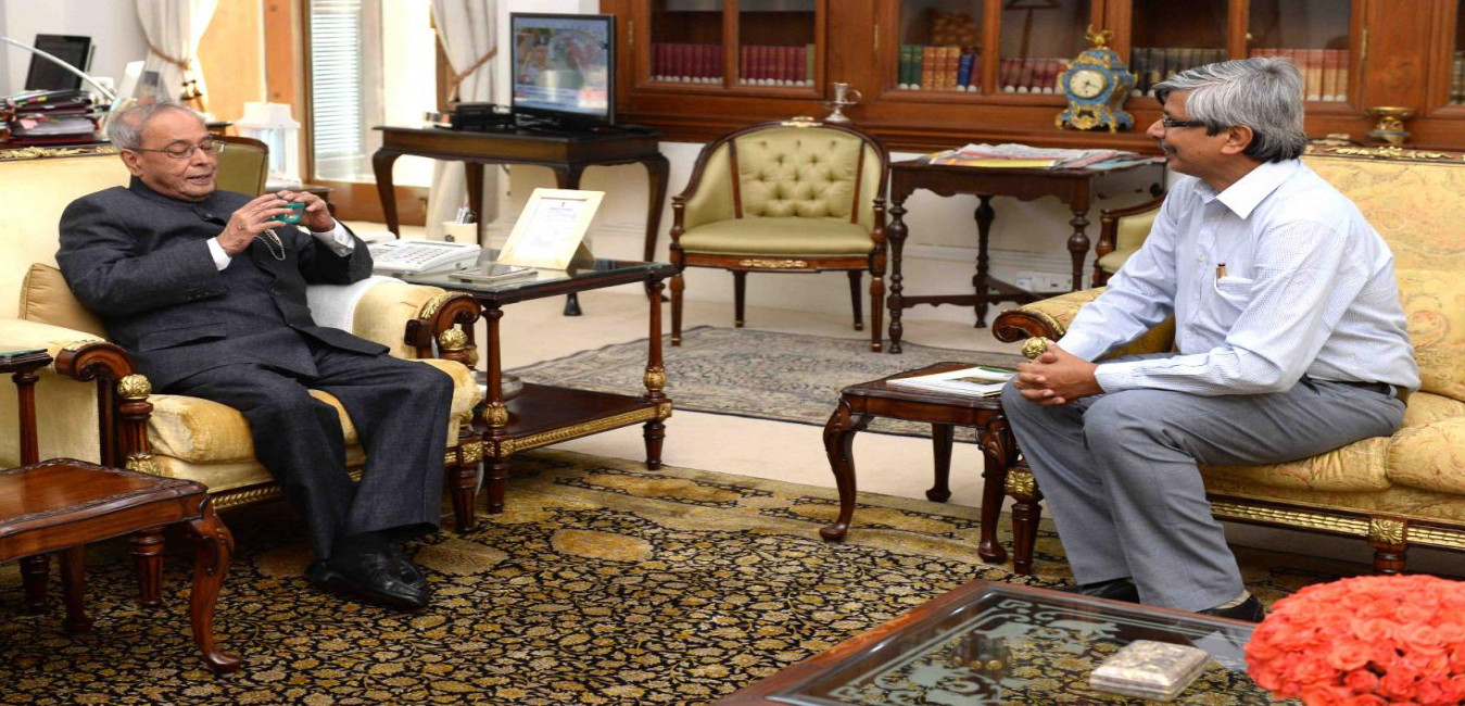 The President of India, Shri Pranab Mukherjee meeting with Prof. Ajoy Kumar Ray, Director, Indian Institute of Engineering Science and Technology, Shibpur, West Bengal, at Rashtrapati Bhavan on August 11, 2016.