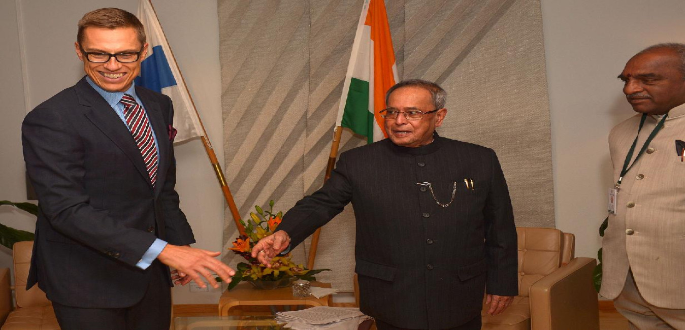 The Prime Minister of Finland, HE Mr Alexander Stubb calling on the President of India, Shri Pranab Mukherjee at Helsinki in Finland on Oct 15, 2014