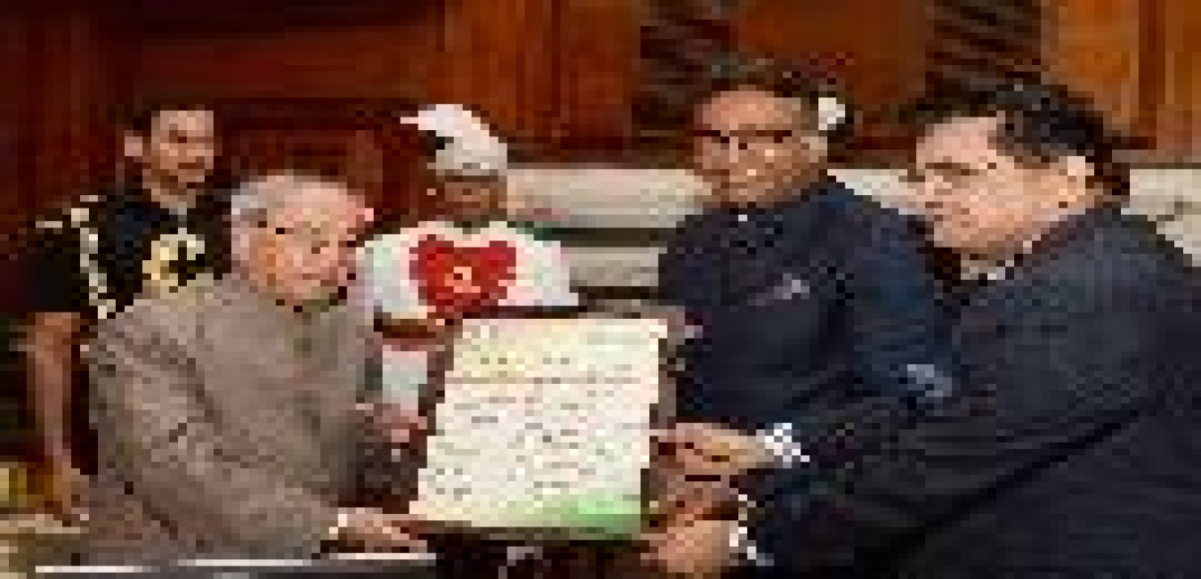 The President of India, Shri Pranab Mukherjee receiving the "State of Indian Universities in the Global Academic Rankings" (Asia Top 25) from Shri Amitabh Kant and Dr. C. Raj Kumar, at Rashtrapati Bhavan on July 20, 2016.