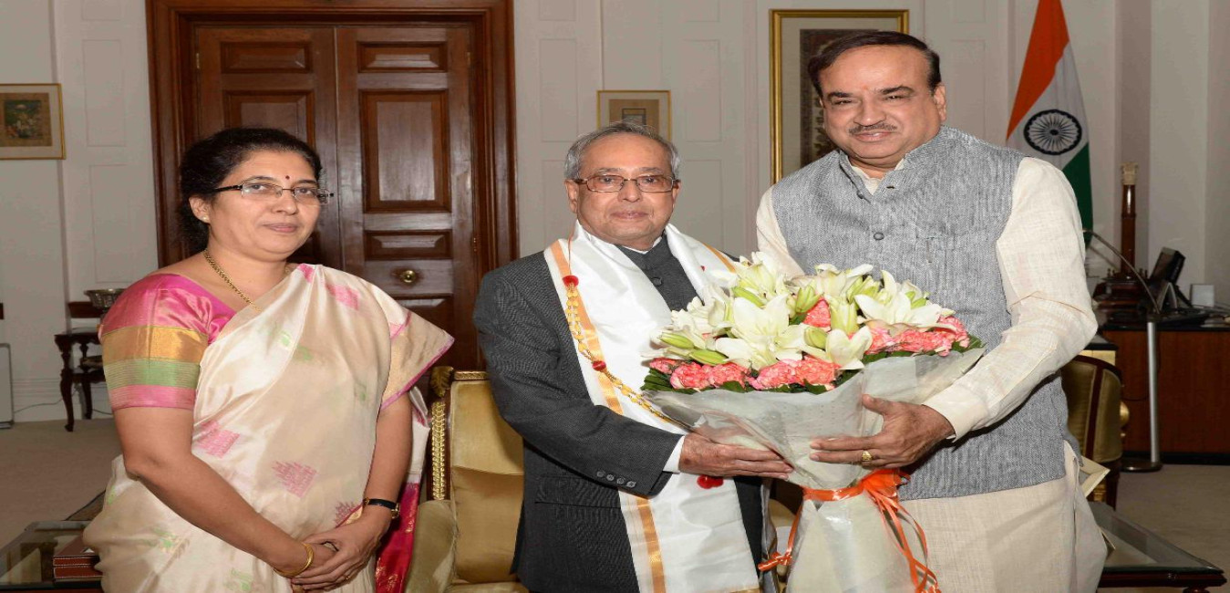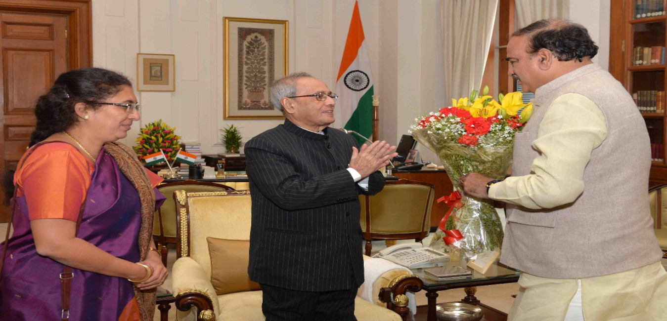 The President of India, Shri Pranab Mukherjee meeting with Shri Ananth Kumar, Minister of Chemicals & Fertilizers and Smt. Tejaswini Ananth Kumar, at Rashtrapati Bhavan on November 11, 2016.