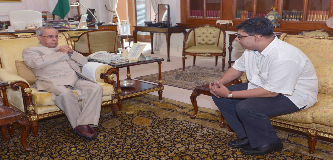 The President of India, Shri Pranab Mukherjee meeting with Shri Arindam Ghosh from Kolkata, at Rashtrapati Bhavan on September 20, 2016.