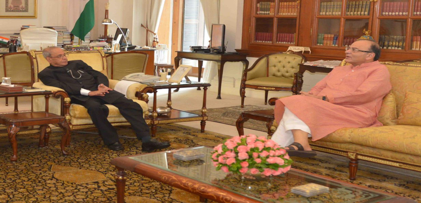 The President of India, Shri Pranab Mukherjee meeting with Shri Arun jaitley, Minister of Finance, at Rashtrapati Bhavan on August 13, 2016.