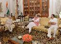 The President of India, Shri Pranab Mukherjee meeting with the Minister of Finance, Shri Arun Jaitley , MOS (Finance), Smt Nirmala Sitharaman and other distinguished officer at Rashtrapati Bhavan in New Delhi on July 10, 2014