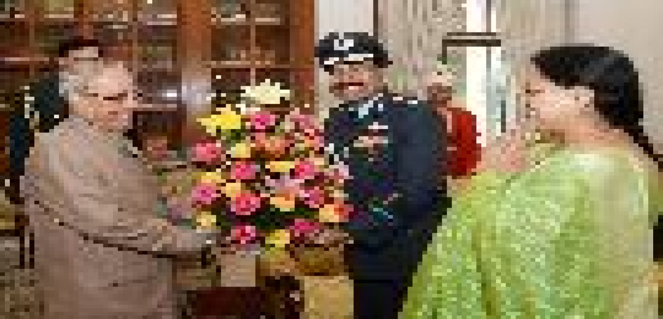 The President of India, Shri Pranab Mukherjee meeting with Air Chief Marshal Arup Raha, Chief of the Air Staff and Mrs. Lily Raha during a farewell call, at Rashtrapati Bhavan on December 21, 2016.