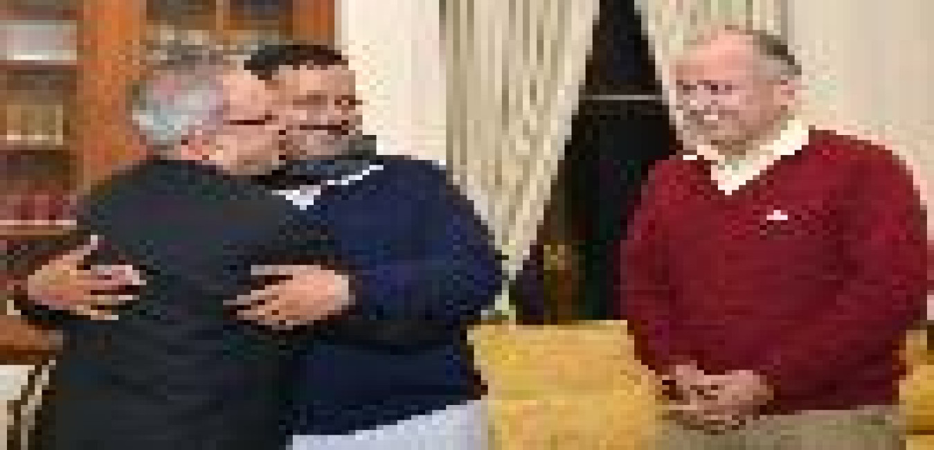 The President of India, Shri Pranab Mukherjee, meeting with Shri Arvind Kejriwal and Shri Manish Sisodia, at Rashtrapati Bhavan, in New Delhi on February 11, 2015.