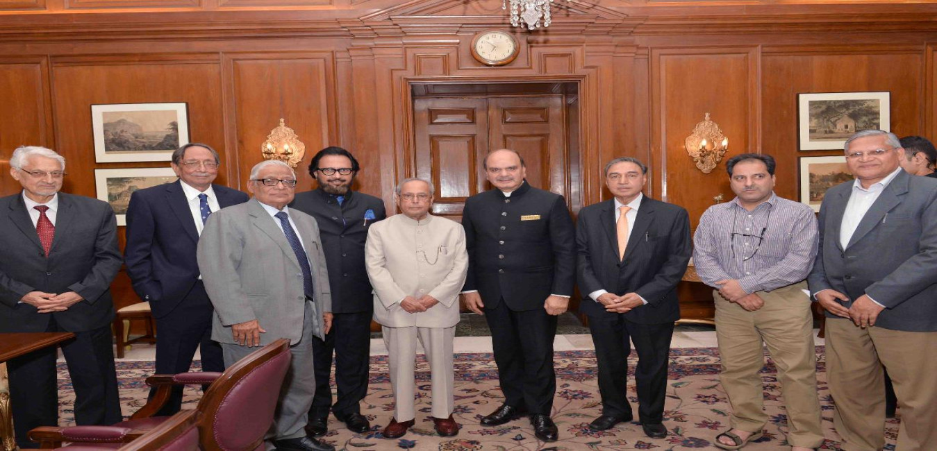 The President of India, Shri Pranab Mukherjee meeting with Shri Ashok Bhan, Senior Advocate, Supreme Court and Chairman, Kashmir Policy & Strategy Group along with a delegation, at Rashtrapati Bhavan on March 15, 2017.