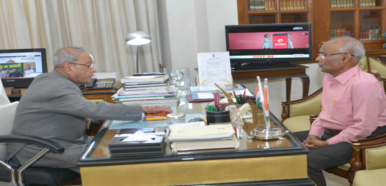 The President of India, Shri Pranab Mukherjee meeting with Shri Ashok Das, at Rashtrapati Bhavan on September 12, 2016.