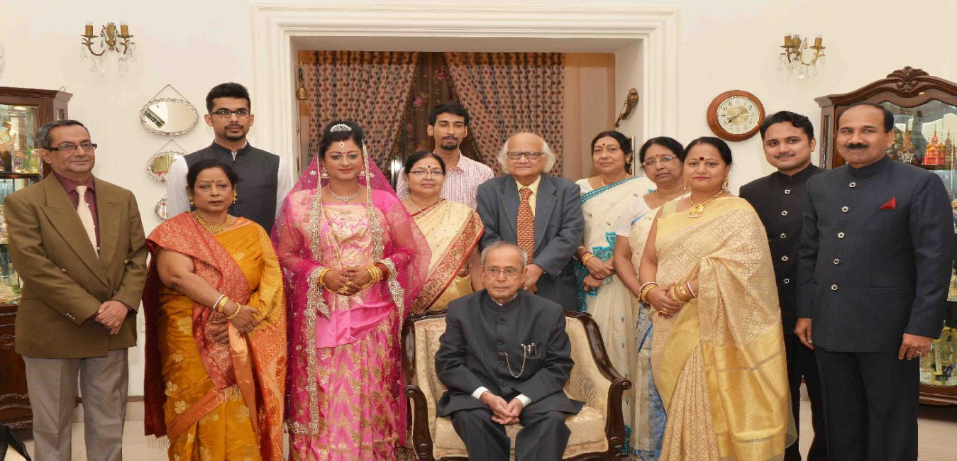 The President of India, Shri Pranab Mukherjee attending Wedding Reception of Shri Atanu Raha, son of Air Chief Marshal Arup Raha, Chief of the Air Staff, in New Delhi on November 21, 2015.