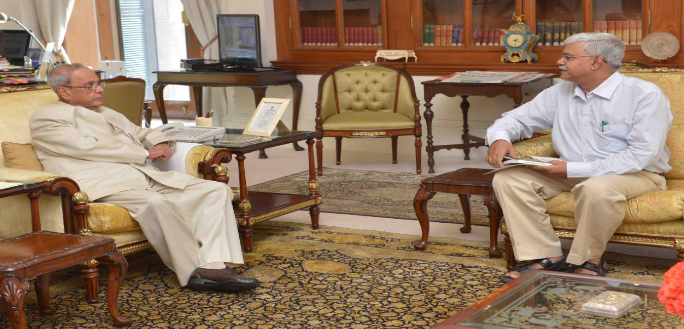 The President of India, Shri Pranab Mukherjee receiving a copy of the book ''Indian Administration: evolution and practice'' from Prof. Bidyut Chakrabarty, at Rashtrapati Bhavan on June 24, 2016.