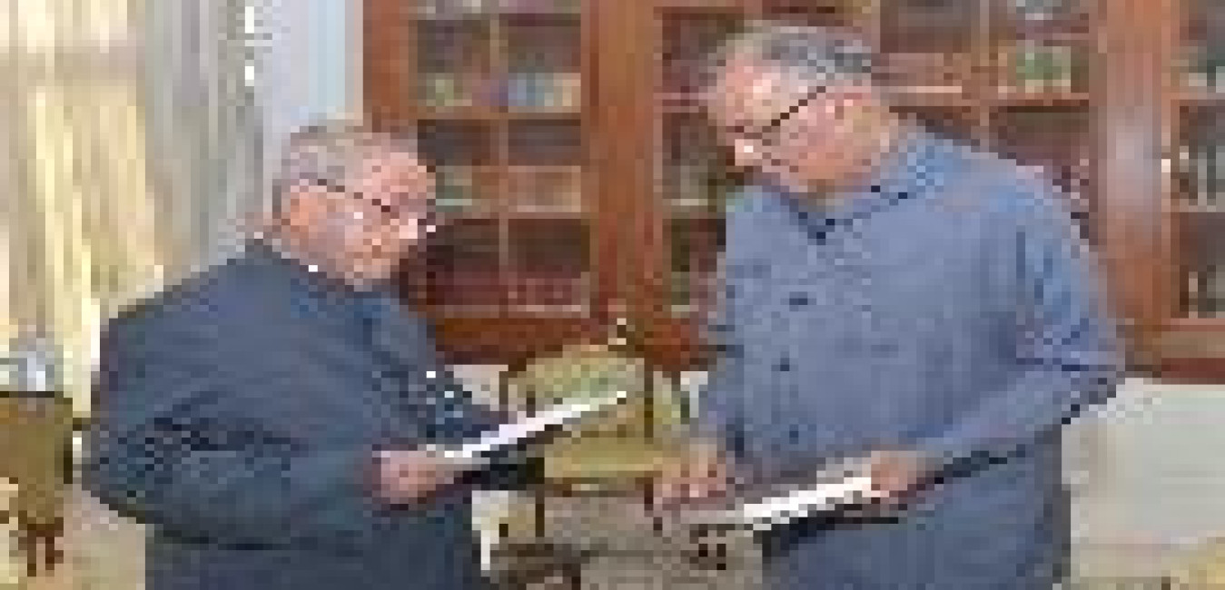 The President of India, Shri Pranab Mukherjee receiving the books ''Sukhi Jeevan'' and ''Indian Culture-Encylopedic Survey-in 8 volumes from Prof. Bithal Das Mundhra, Chairman, Bharatiya Vidya Mandir, Kolkata, at Rashtrapati Bhavan on June 08, 2017.
