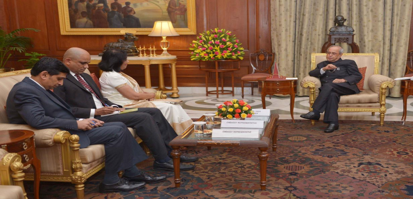 The High Commissioner-designate of Sri Lanka, H.E. Mrs. Chitraganee Wagisewara presenting her credentials to the President of India, Shri Pranab Mukherjee, at Rashtrapati Bhavan on September 26, 2016.