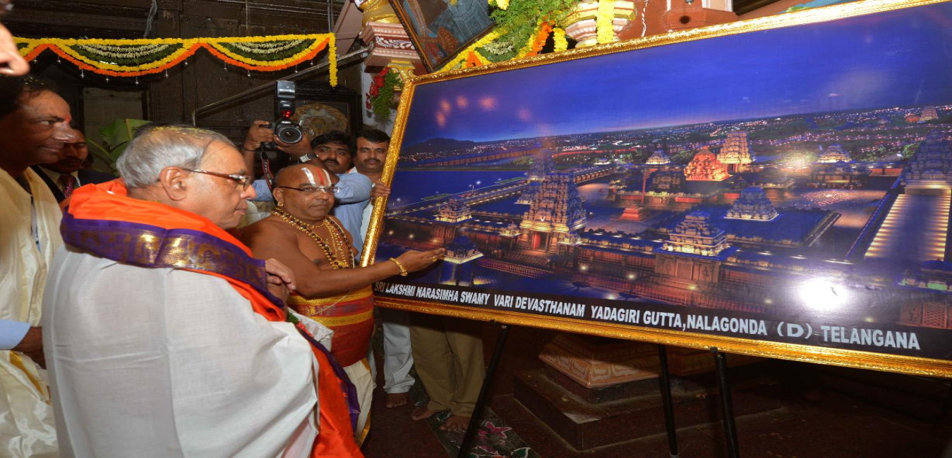 The President of India, Shri Pranab Mukherjee during his visit to Sri Lakshmi Narsimha Swamy Temple, at Yadgirigutta, Nalgonda District, in Telangana on July 05, 2015.