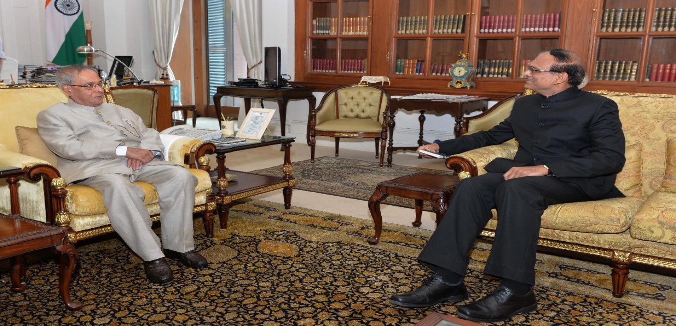 The Defence Secretary, Shri G. Mohan Kumar meeting the President of India, Shri Pranab Mukherjee, at Rashtrapati Bhavan, in New Delhi on June 17, 2015.