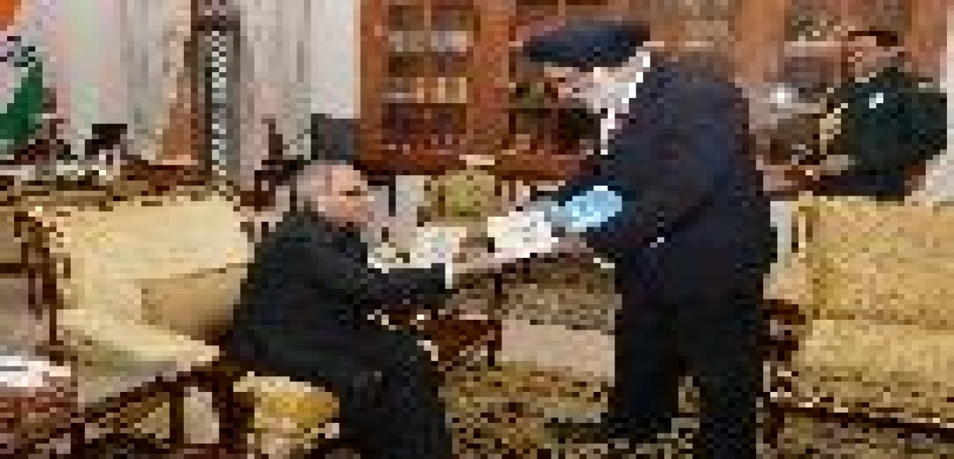 The President of India, Shri Pranab Mukherjee receiving a copy of the book ''Opportunity Beckons Adding Momentum to the Indo-German Partnership'' from Shri Gurjit Singh, former Ambassador of India to Germany, at Rashtrapati Bhavan on June 24, 2017.