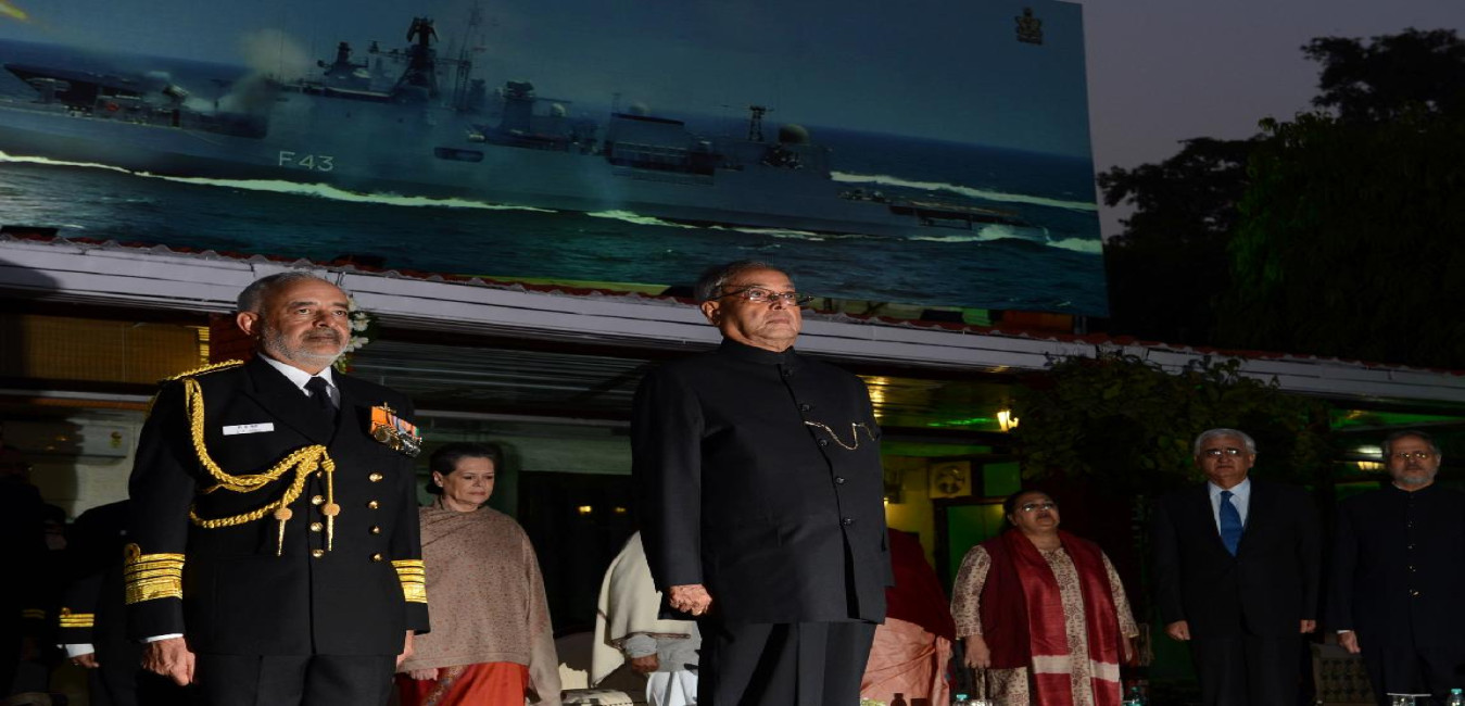 The President of India, Shri Pranab Mukherjee at the Navy Day Reception hosted by the Chief of the Naval Staff at Navy House in New Delhi on Dec 04, 2013