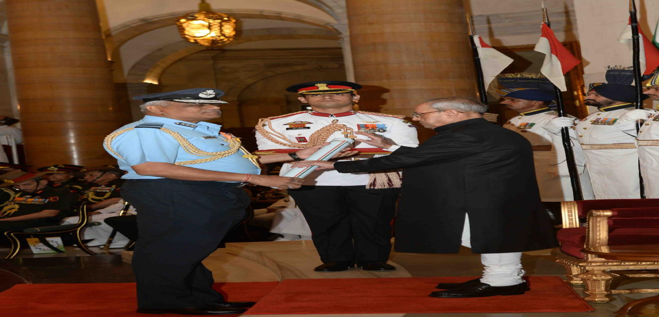 The President of India, Shri Pranab Mukherjee presenting the Gallantry Awards & Distinguished Service Decorations, during the Defence Investiture Ceremony, at Rashtrapati Bhavan, in New Delhi on April 26, 2015.