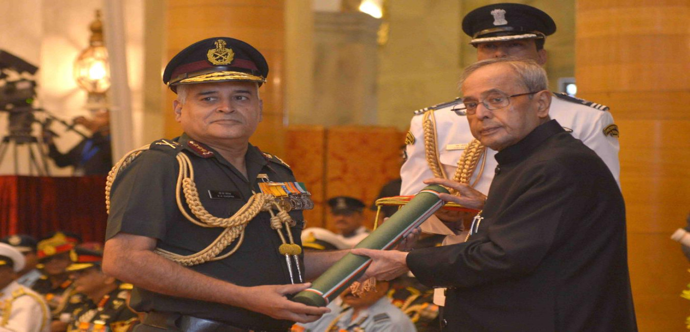 The President of India, Shri Pranab Mukherjee presenting the Gallantry Awards and Distinguished Service Decorations, at a Defence Investiture Ceremony, at Rashtrapati Bhavan on March 22, 2016.
