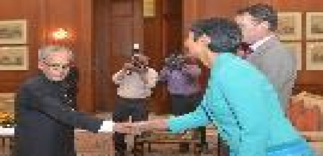 The High Commissioner-designate of Australia, H.E. Ms. Harinder Kaur Sidhu presenting her Credentials to the President of India, Shri Pranab Mukherjee, at Rashtrapati Bhavan on April 04, 2016.