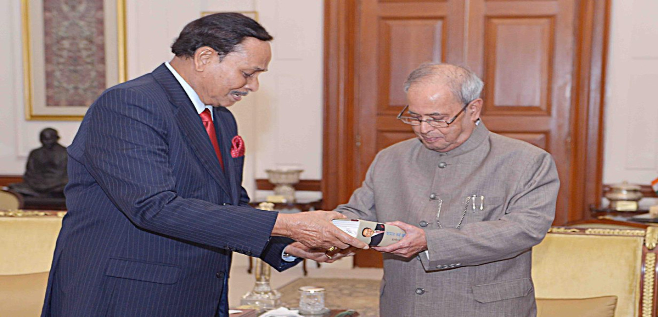 The Former President and Prime Minister of Bangladesh, H.E. Mr.Hussain Muhamad Ershad calling on the President of India, Shri Pranab Mukherjee, at Rashtrapati Bhavan on June 21, 2016.