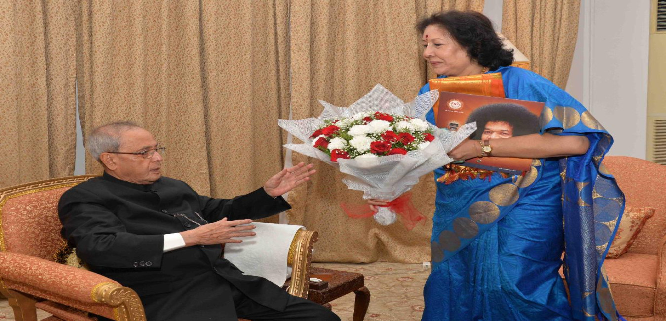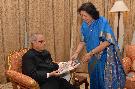 The President of India, Shri Pranab Mukherjee meeting with Dr. (Smt.) J. Geetha Reddy, at Rashtrapati Nilayam, Bolarum, in Secunderabad on December 29, 2015.