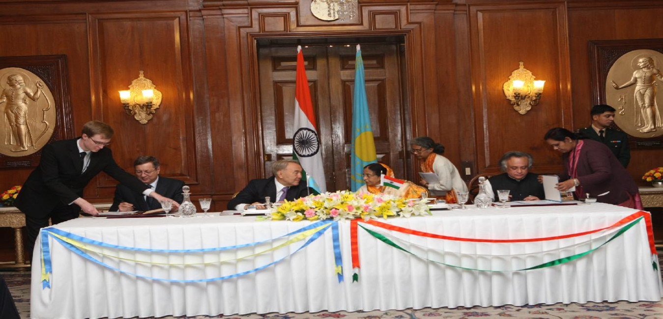 The President of India, Smt Pratibha Devisingh Patil at the Signing of Agreement between the Two Countries in the Presence of the President of the Republic of Kazakhstan, HE Mr Nursultan Nazarbayev at Rashtrapati Bhavan in New Delhi on Jan 24, 2009