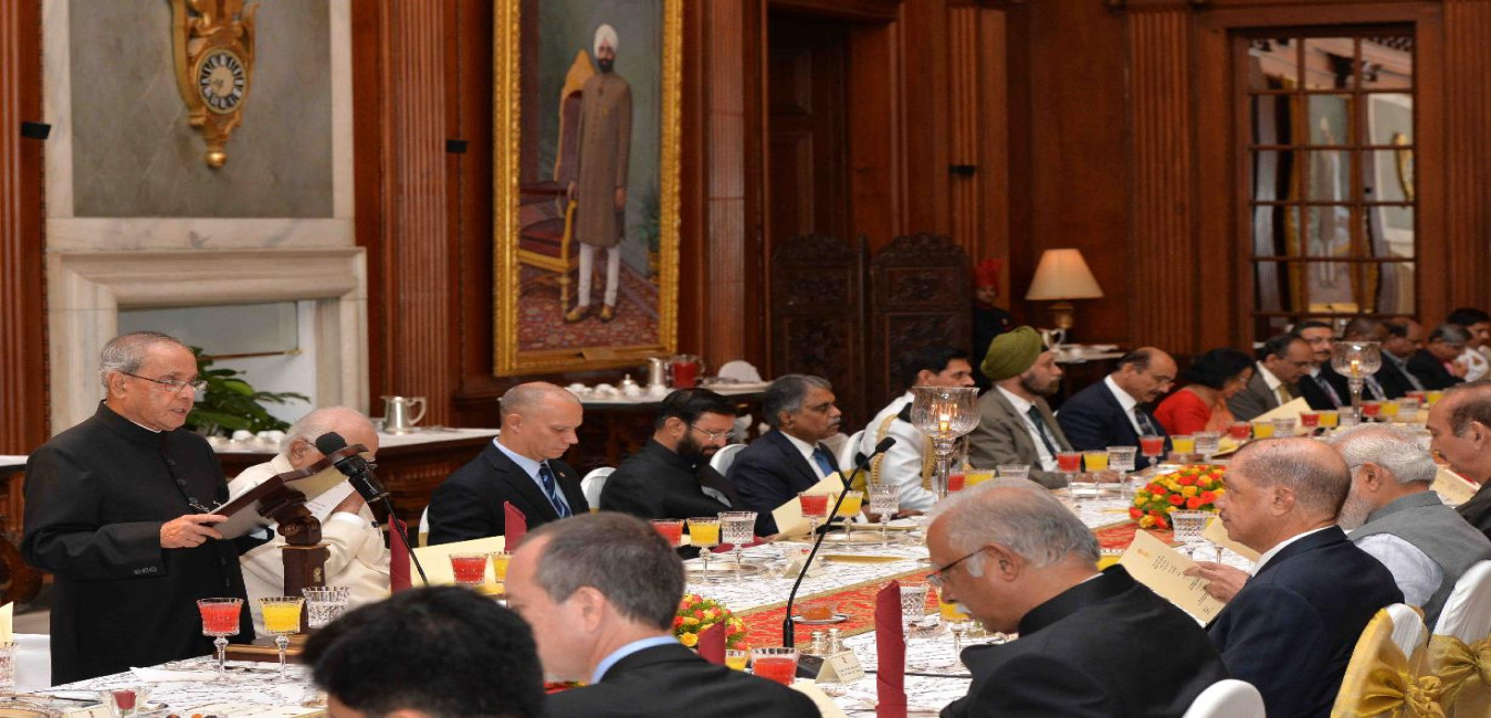 The President of India, Shri Pranab Mukherjee hosting a Banquet in honour of the President of the Republic of Seychelles, H.E. Mr. James Alix Michel, at Rashtrapati Bhavan, in New Delhi on August 26, 2015.