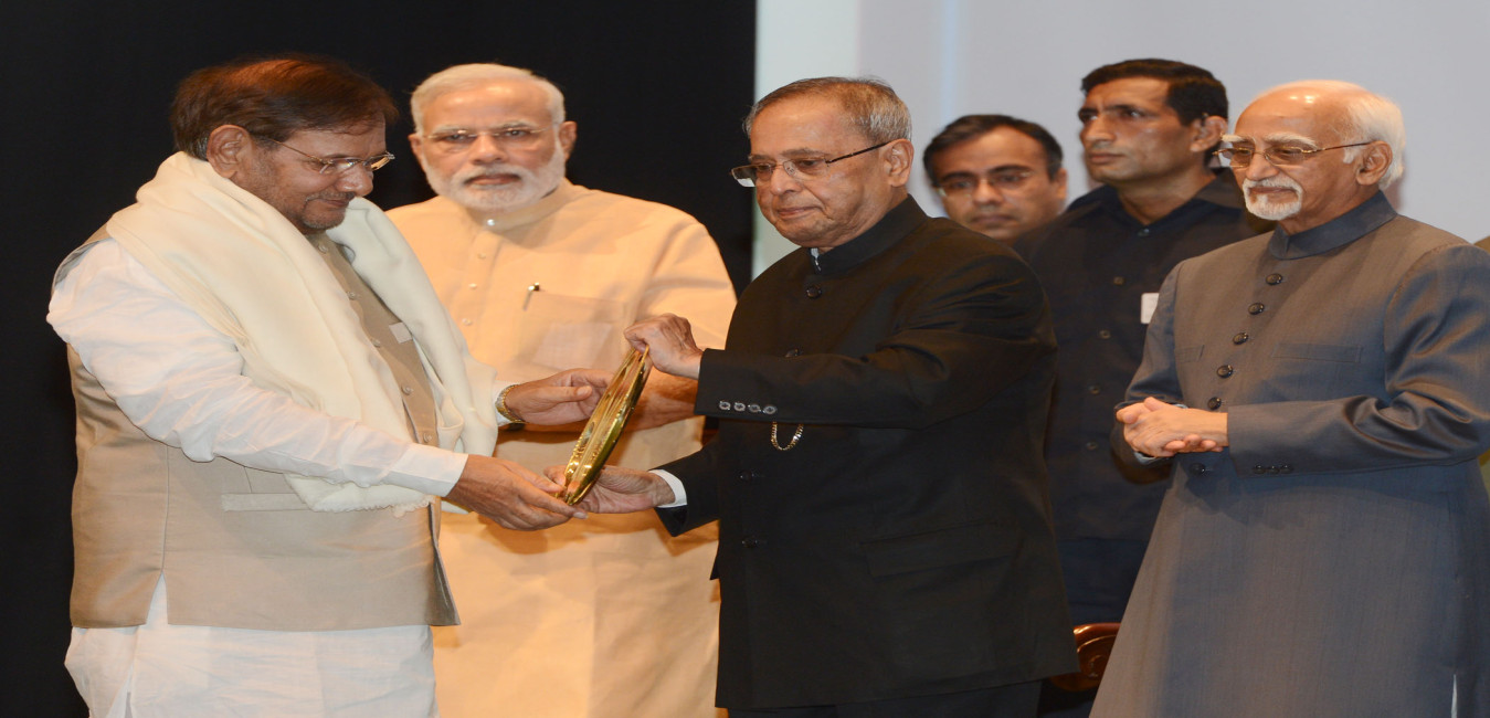 The President of India, Shri Pranab Mukherjee presenting the Outstanding Parliamentarian Award for the Year 2010 at Balayogi Auditorium, Parliament Library Building in New Delhi on August 12, 2014