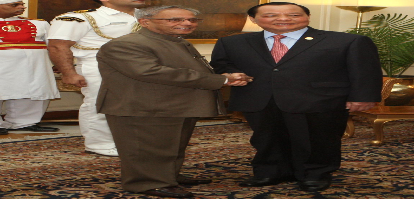 The Politburo Member of Vietnam Communist Party and Secretary of Ho Chi Min City Party Committee, HE Mr Le Thanh Hai calling on the President of India, Shri Pranab Mukherjee at Rashtrapati Bhavan in New Delhi on March 14, 2013