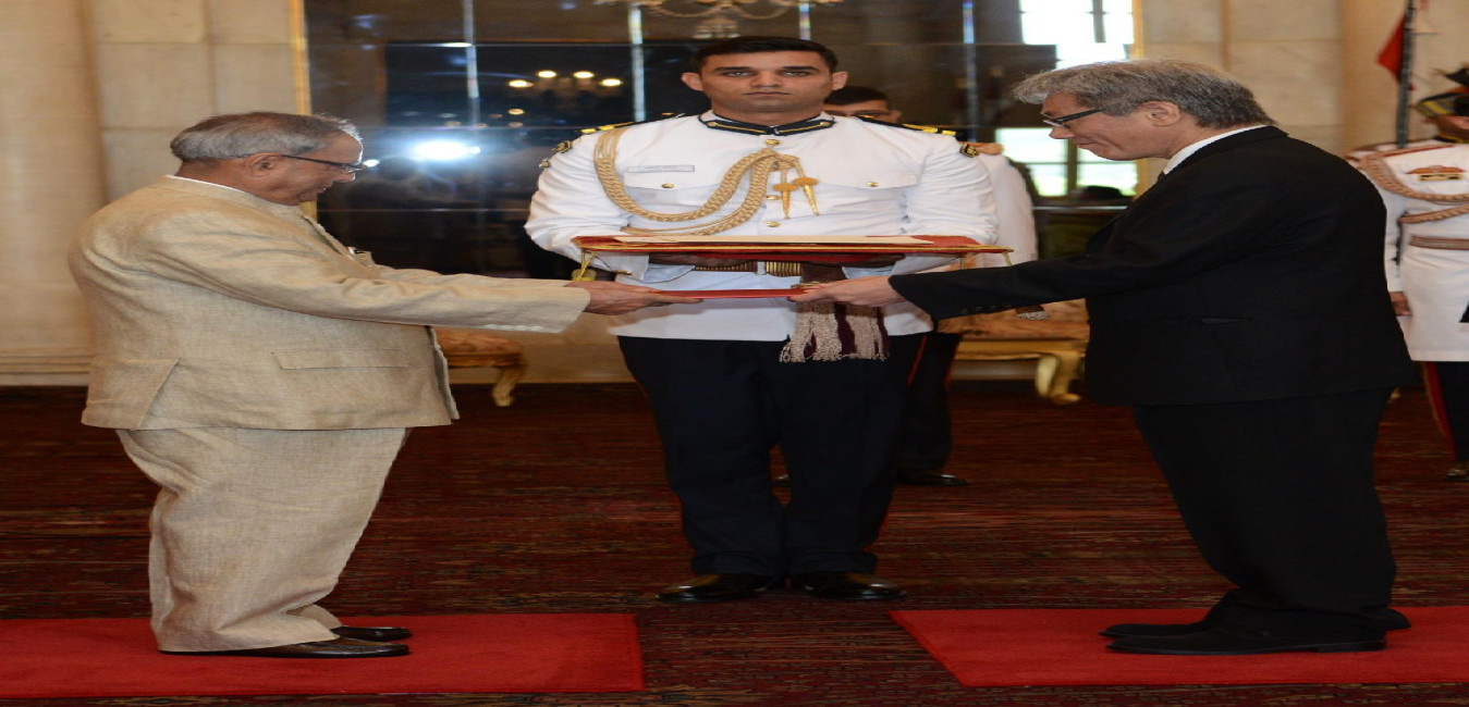 HE Mr Lim Thuan Kuan, High Commissioner - Designate of the Republic of Singapore presenting his credentials to The President of India, Shri Pranab Mukherjee at Rashtrapati Bhavan in New Delhi on Sep 04, 2013