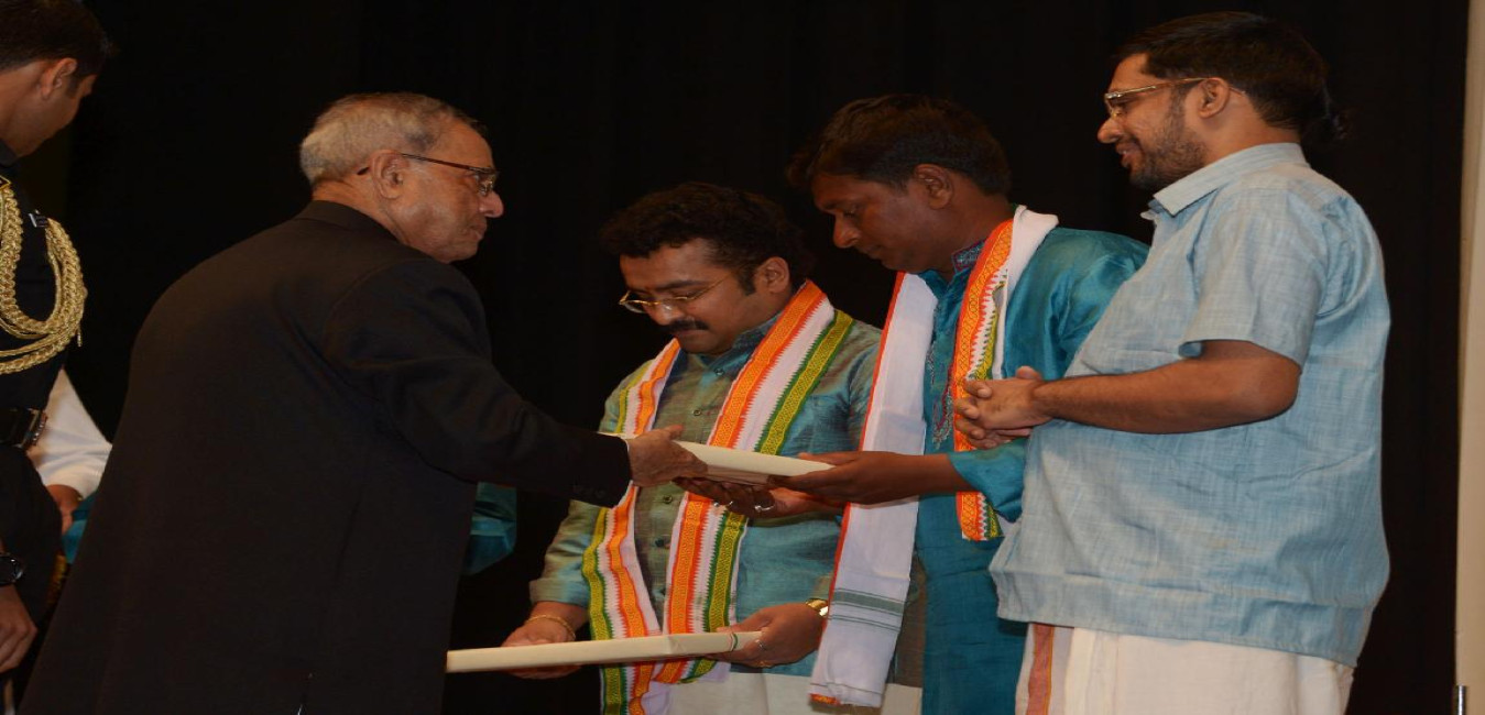 The President of India, Shri Pranab Mukherjee with the Artists after a Concert by Dr M Balamuralikrishna at Rashtrapati Bhavan Auditorium in New Delhi on March 22, 2014