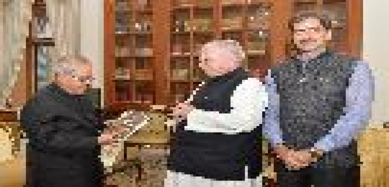 The President of India, Shri Pranab Mukherjee meeting with the former Union Minister, Shri M.L. Fotedar alongwith his son Shri Arun Fotedar, at Rashtrapati Bhavan, in New Delhi on October 30, 2015.