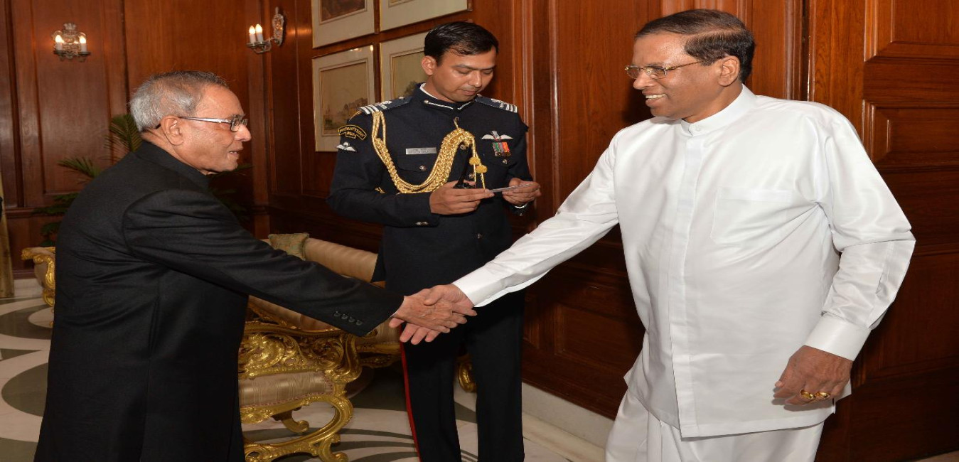 The President of the Democratic Socialist Republic of Sri Lanka, HE Mr Maithripala Sirisena, calling on the President of India, Shri Pranab Mukherjee, at Rashtrapati Bhavan, in New Delhi on Feb 16, 2015.