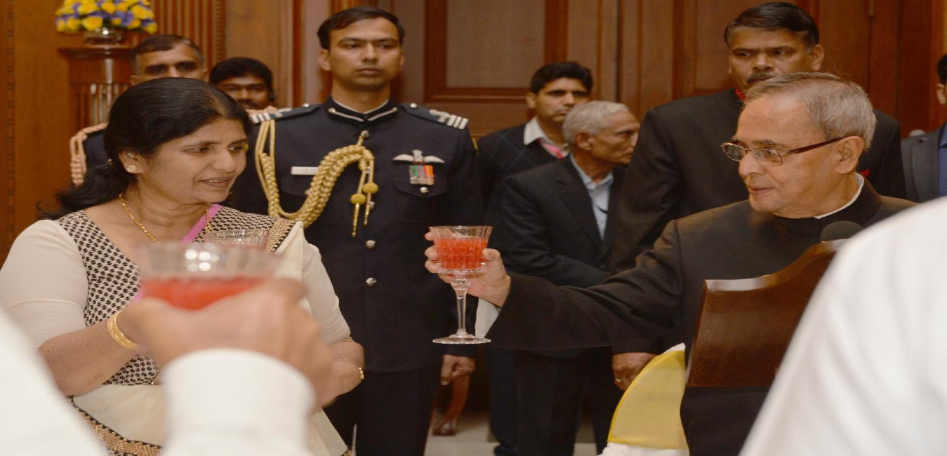 The President of India, Shri Pranab Mukherjee during the Banquet in Honour of the President of the Democratic Socialist Republic of Sri Lanka, HE Mr Maithripala Sirisena and Mrs Jayanthi Sirisena, at Rashtrapati Bhavan, in New Delhi on February 16, 2015.