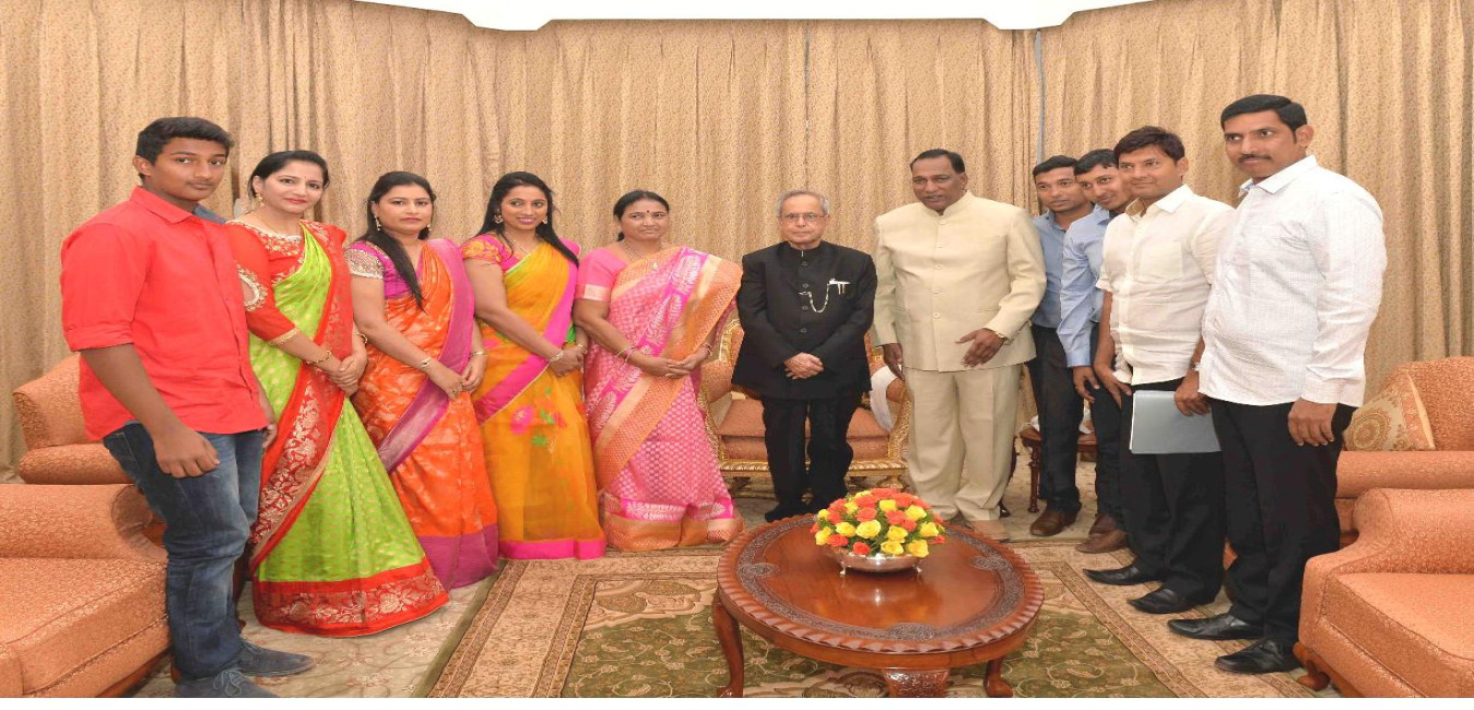 The President of India, Shri Pranab Mukherjee meeting with Ch. Malla Reddy and others, at Rashtrapati Nilayam, Bolarum, in Secunderabad on July 07, 2015.