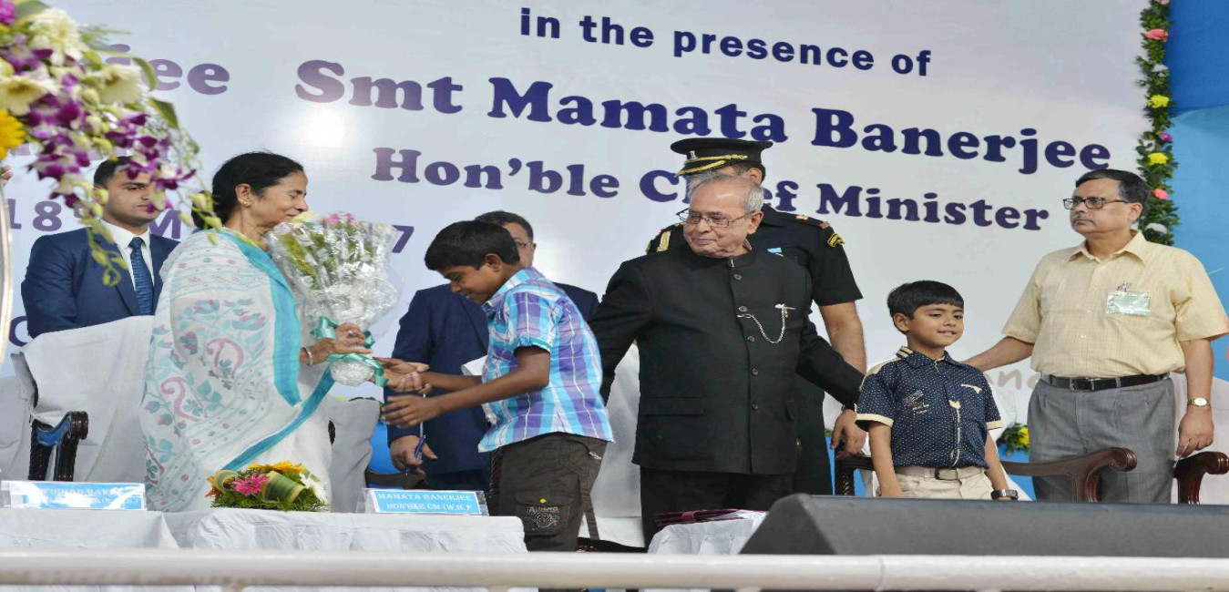 The President of India, Shri Pranab Mukherjee being welcomed, on his Arrival at Sonarpur Helpad, in West Bengal on May 18, 2017.